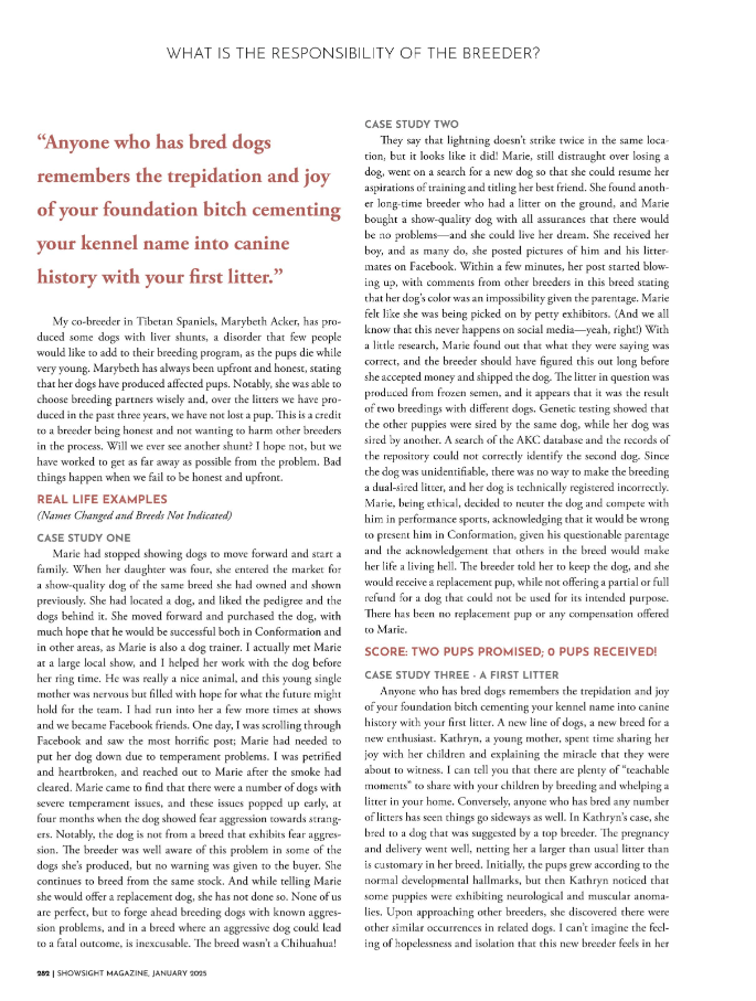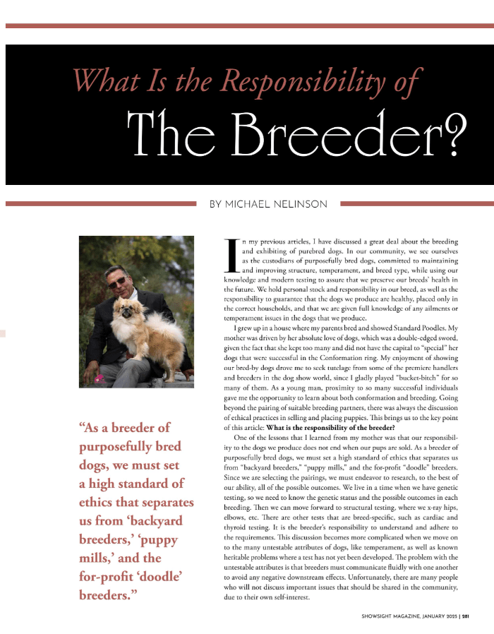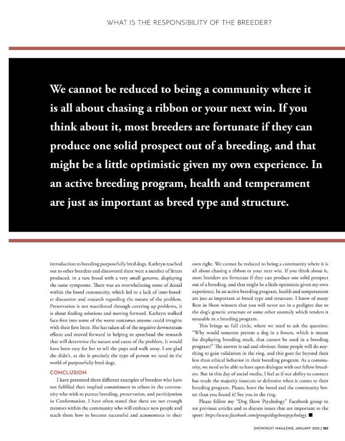 Uncategorized Showsight: What Is the Responsibility of The Breeder January 2025 Date: January 28, 2025Author: Michael J. Nelinson (Ramyn) 0 Comments Share this: Share on X (Opens in new window) X Share on Facebook (Opens in new window) Facebook Like Loading... Related
